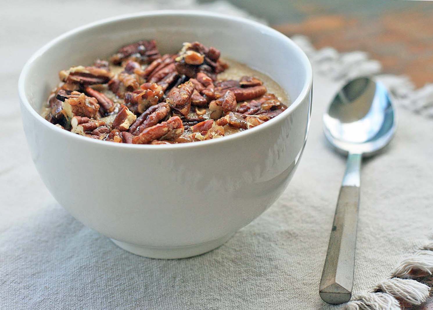 Amaranth Porridge with Candied Cinnamon Pecans, Adapted from My Sweet Mexico: Recipes for Authentic Pastries, Breads, Candies, Beverages, and Frozen Treats