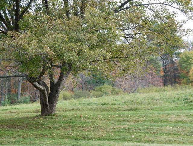 This tree was here long before I even knew what a Berkshire hill was. Since I’ve been here, it’s had good years and bad. Some years nary an apple she grows, and others like this one, they swing like baubles sassy in the breeze, wooing me from the window at which I work each day.