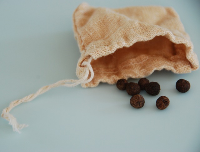 3. When apples are soft all the way through, take off the heat and pass them through a food mill. Discard the skins & seeds and return the apple flesh to pot. Add sugar, ground ancho, wine vinegar, and whole allspice. Place the allspice in a cloth tea bag, metal tea ball, or cheesecloth so that it is easy to fish out later.