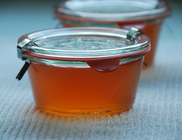 To make jelly use equal cups of stock & sugar, and some added lemon juice. Generally 2 tablespoons of lemon juice to 3 cups stock/3 cups sugar will do it. It’s July!