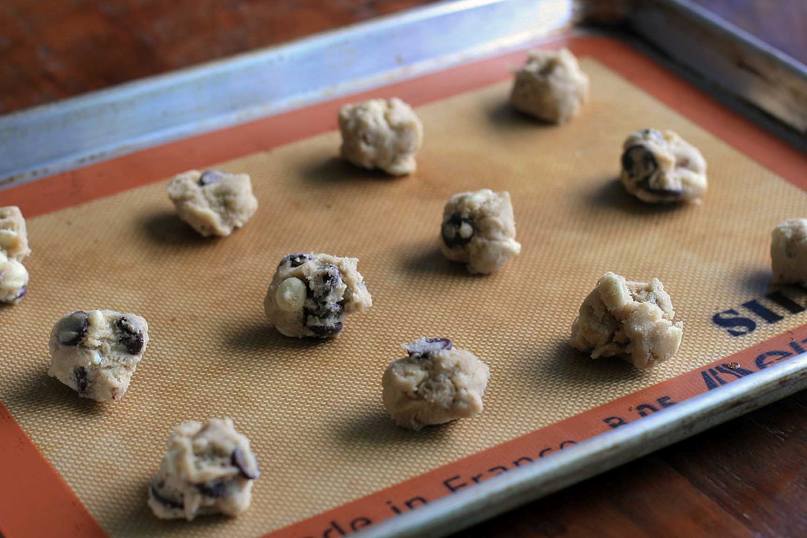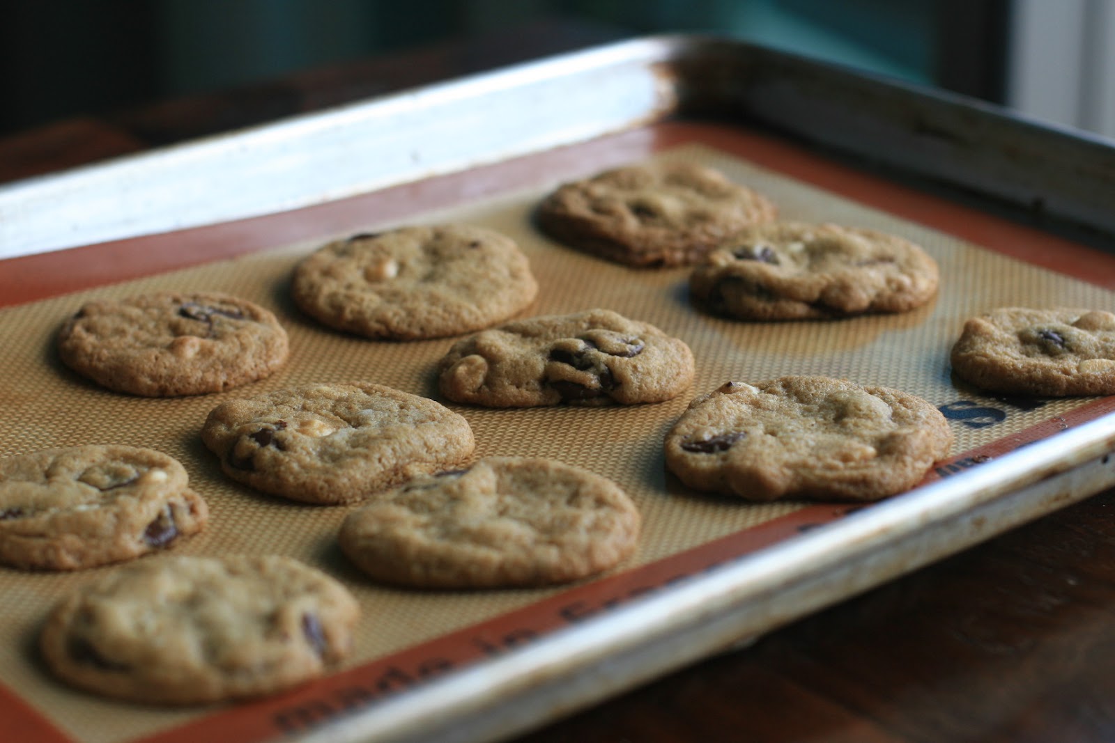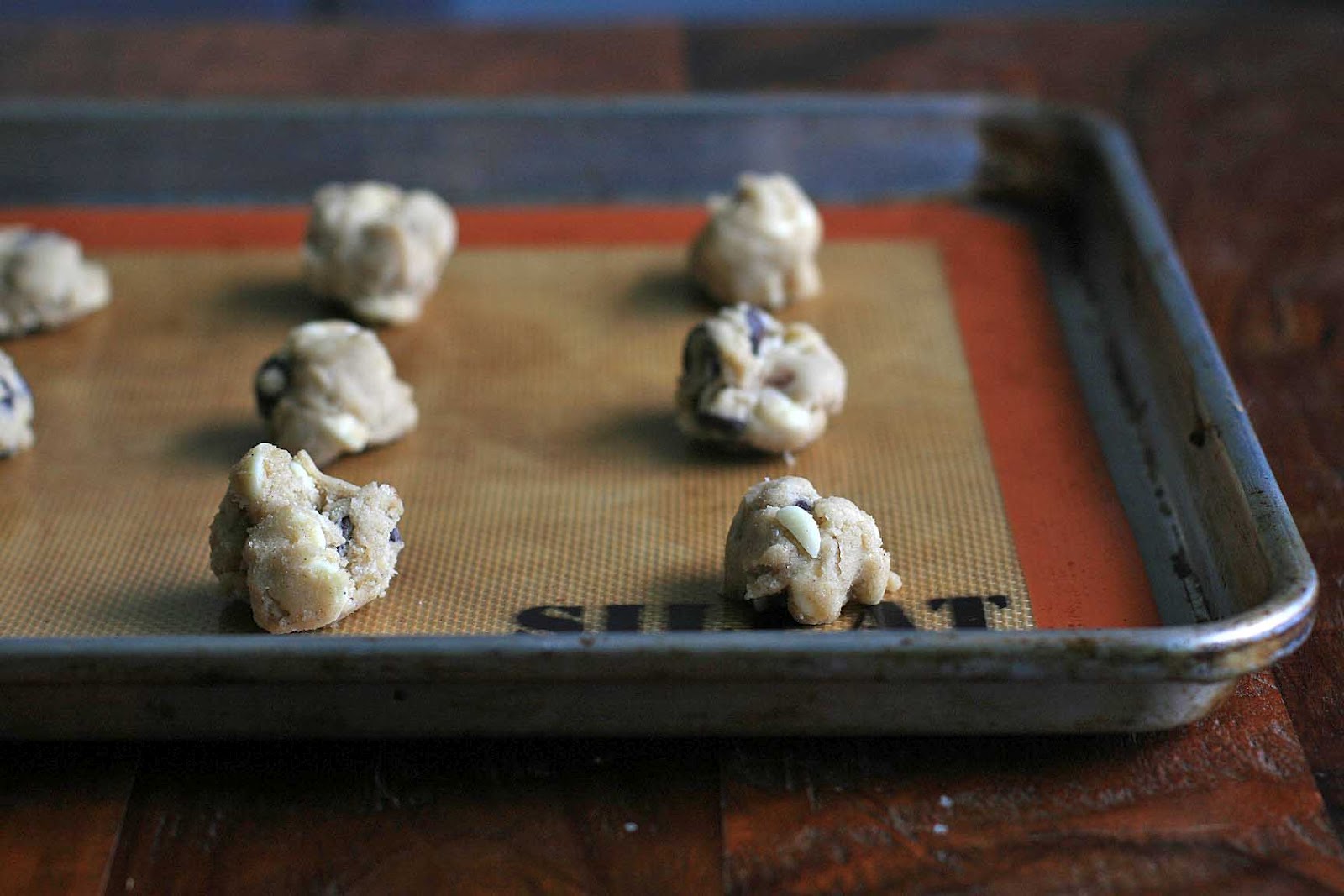 Although I’m not sure whether I should I be flattered or offended by the question/statement because I’d like to think they taste a whole lot better than “regular” cookies. These are a slight variation from my regular chocolate chip cookies… I subbed some white chocolate for the milk chocolate chips but stuck with my usual ratio of 50% butter and 50% shortening.