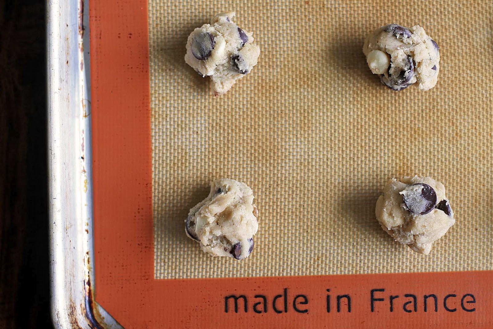 Bittersweet and white chocolate chip cookies… because sometimes you just need a cookie. And not some overpriced, packaged, gritty gluten-free cookie, but one hot from the oven oozing with melted chocolate with crispy edges and a soft, chewy center. A cookie that people have to ask whether they’re truly gluten-free because according to them, they look and taste like a regular cookie.