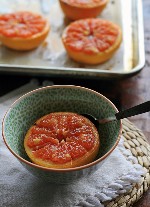The broiling has the surprising effect of making the grapefruit even juicier and the brown sugar turns into a delightfully sweet syrup that seeps into each and every grapefruit segment.