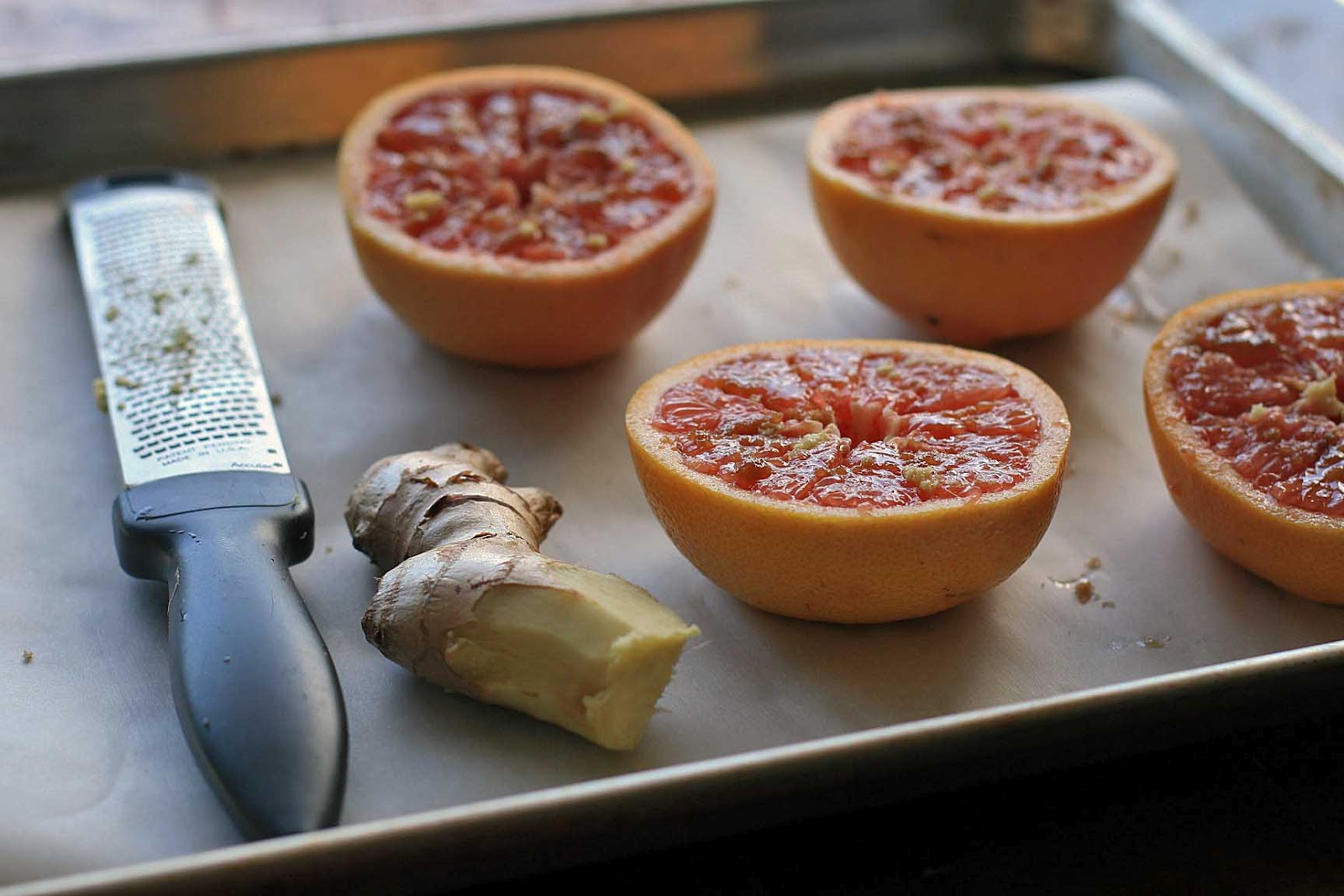 On occasion I feel like things get too complicated around here: recipes with too many steps, too many ingredients, etc. So I’m bringing simple back, with a simple broiled grapefruit with the zing of fresh ginger and brown sugar for extra sweetness.