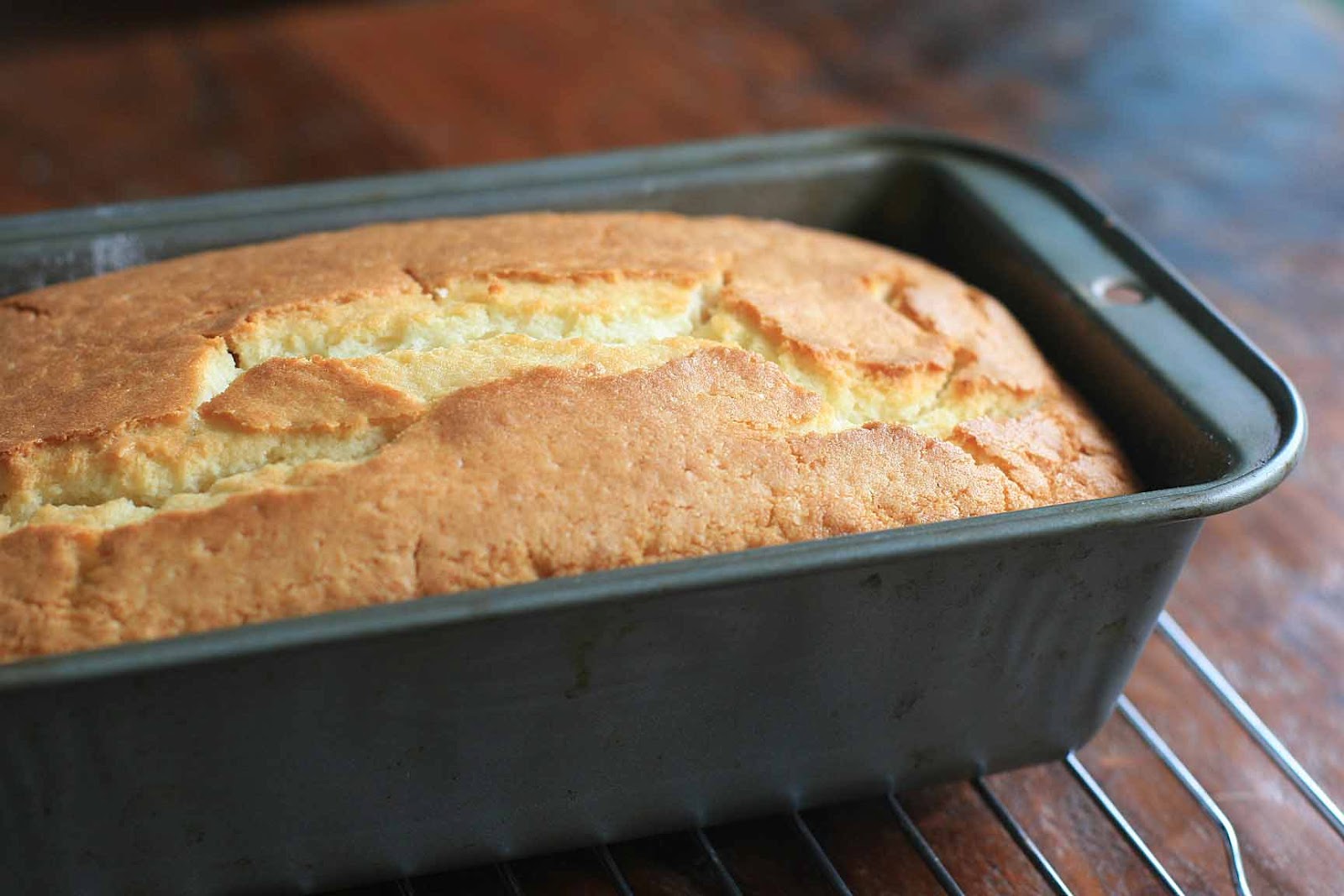 Preheat oven to 350 degrees and grease a loaf pan and dust generously with rice flour.