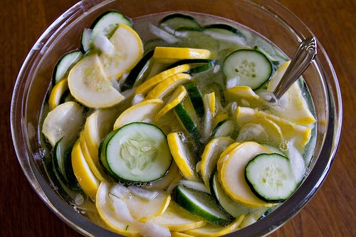 green & yellow squash pickles – market life sf yikes! Those zukes don’t stand a chance around that fancy mandolin! And they looks so nice & svelte in those jars too. 🙂