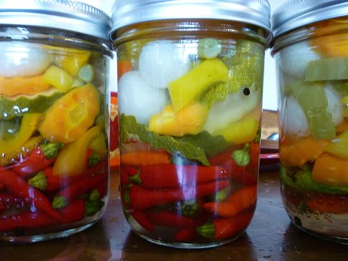 pickled peppers – putting by, a basic pepper pickling recipe right here! (And a lesson in how giving gives back, especially if it’s to a farmer at the end of the season I might add!)