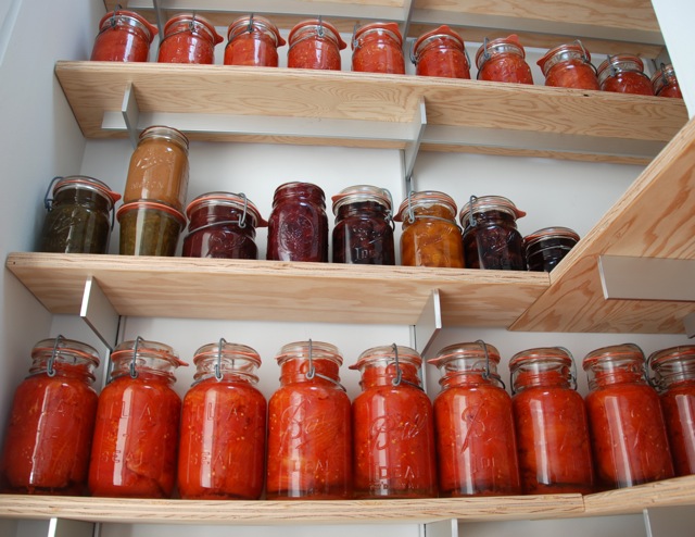 - Keeping the dry larder stocked, organized and efficient. This includes the grains, beans, spices, herbs and other dried goods. Finding a balance between storing enough, and using them when they are at their most fresh is important. Sussing out local sources for goods in this category is an on-going challenge. And drying and dehydrating are preserving methods that I need to explore more.