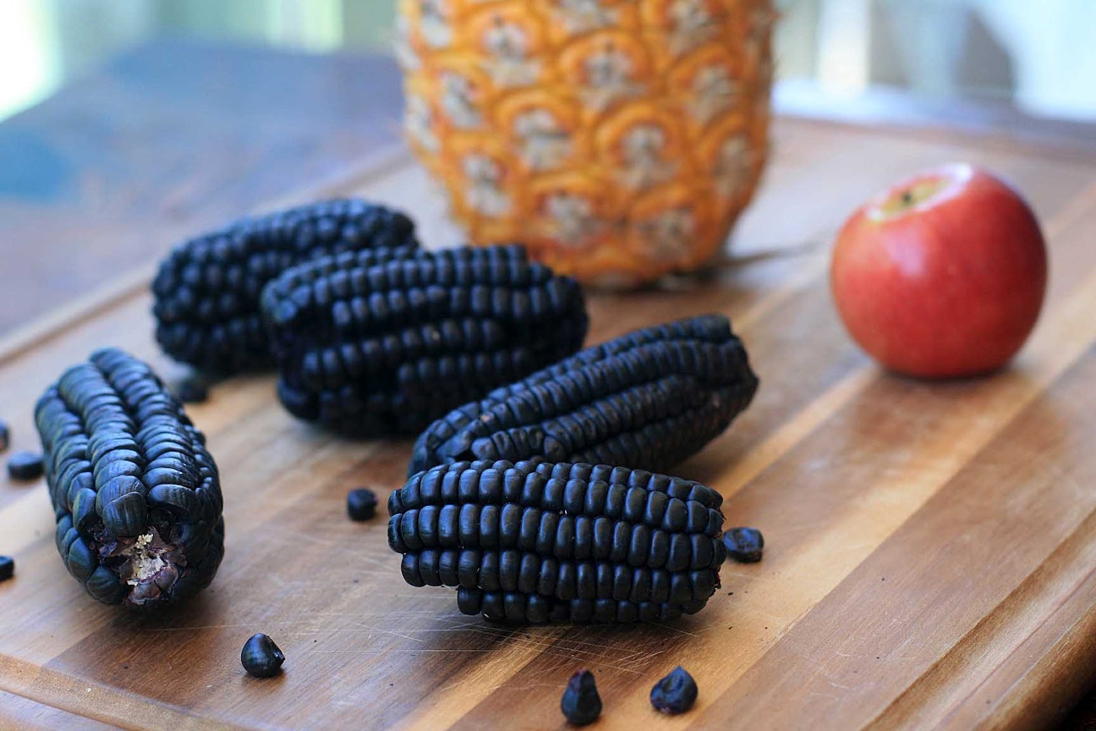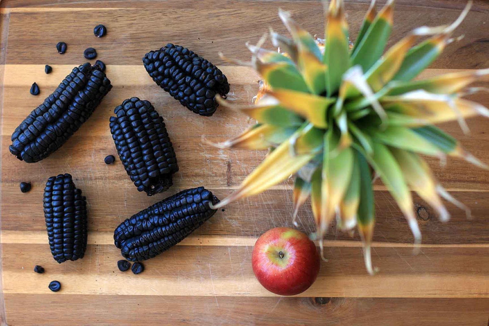 Had I seen these gorgeous purple corn husks outside of a Latin American grocery, I would have guessed that they were purely ornamental, much like the ones that emerge as decorations every fall in picturesque places like New England (I’ve never seen anybody attempt fall decorations beyond a pumpkin or mum plant out here in Hawaii).