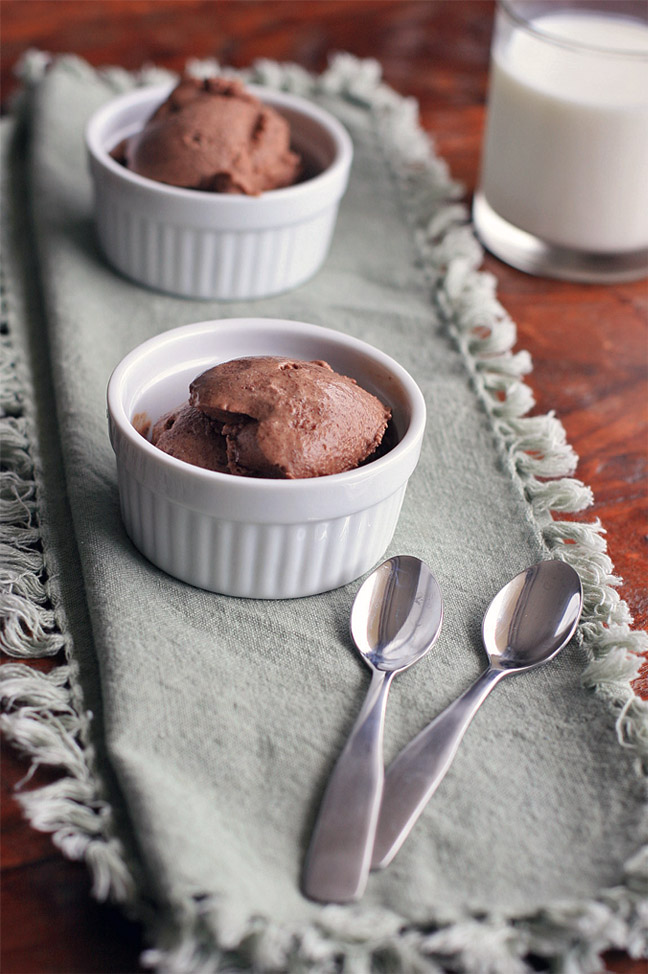 Had I been forced into a dairy-free existence, making this chocolate and coconut sherbet would probably be a weekly occurrence. Even now it’s a favorite.  It’s easier to make than custard-style ice creams and is surprisingly creamy, considering the lack of egg yolks.  Just don’t omit the alcohol, which keeps the sherbet from freezing into a hard, solid block.