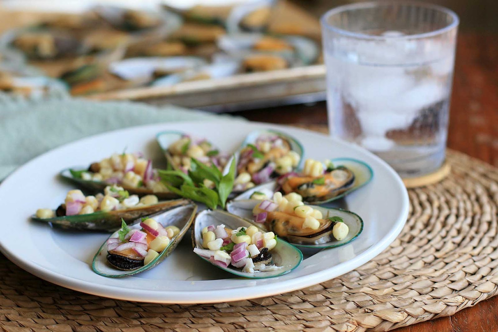Choros à la Chalaca- Peruvian Mussels with Corn Salsa