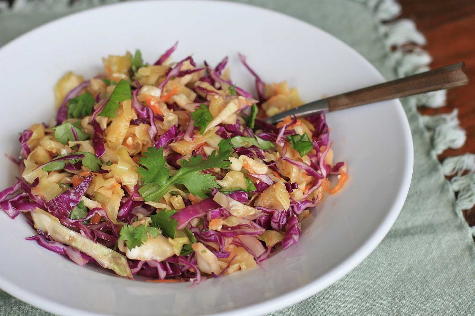 In this non-traditional recipe, coleslaw’s nutritional value gets a major upgrade. A colorful blend of red and green cabbage, orange carrots and green cilantro gets marinated in a simple lemon, miso, ginger and tamari dressing. Stevia, which has become my best friend over the past couple weeks, is added to achieve your desired level of sweetness.
