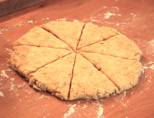6. I like my scones rustic looking – simply take a knife or dough scraper and pie-cut into 8 triangles.
