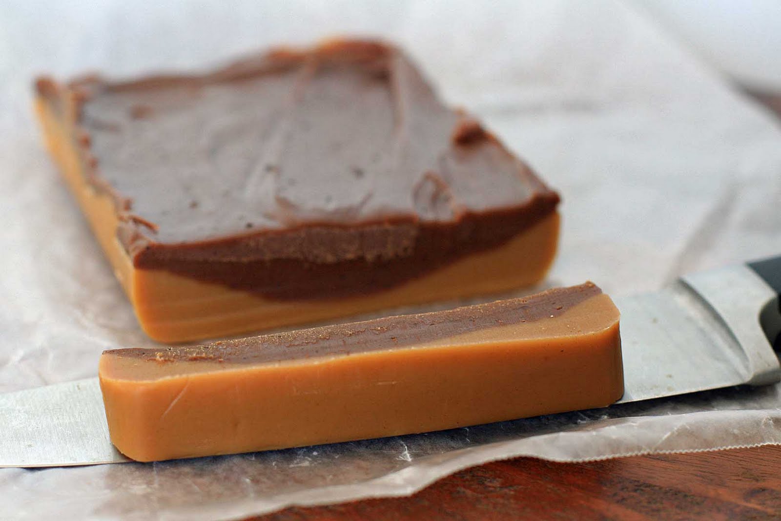 Pour half of the mixture into the prepared loaf pan and spread evenly. Add the cocoa powder to the remaining mixture and stir to combine. Pour the mocha caramel over the coffee caramel and allow to come to room temperature. Place in the refrigerator until chilled. Remove and cut into bite-sized pieces. Wrap pieces in small squares of waxed paper.