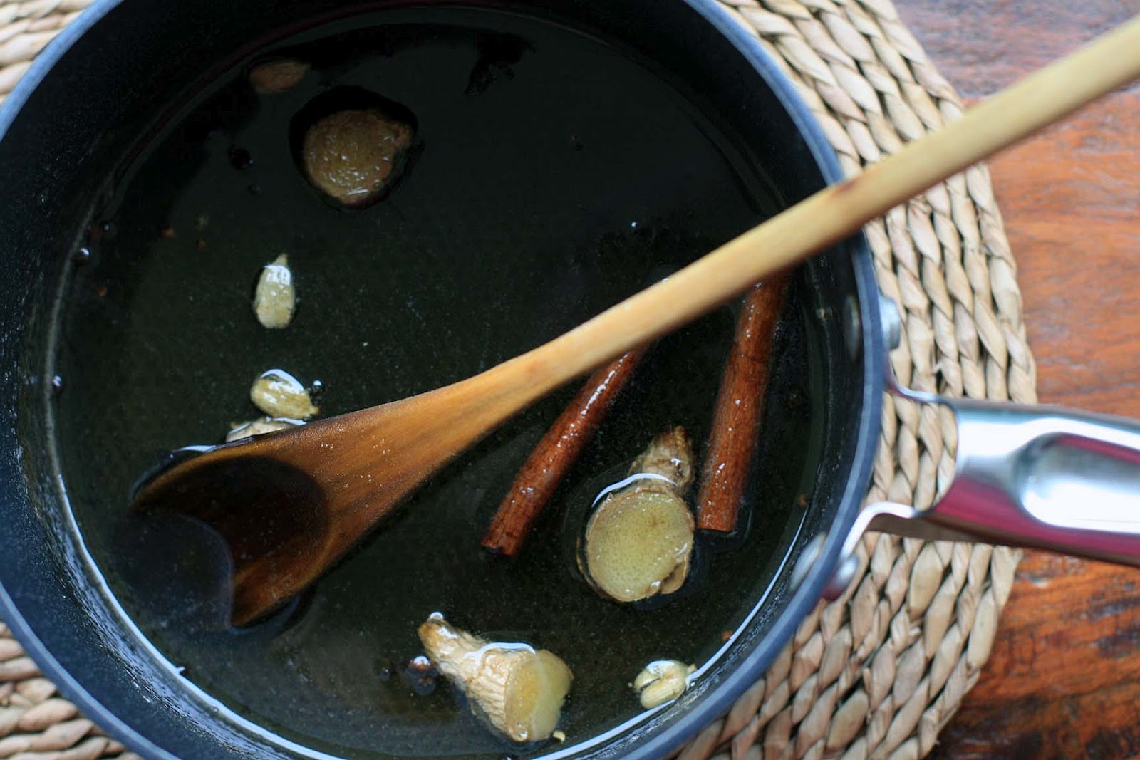 It finally occurred to me to make a spiced chai syrup to add to plain black of green tea. You get all the complex spice of the traditional method but it won’t take any longer to make than your basic cup of tea.