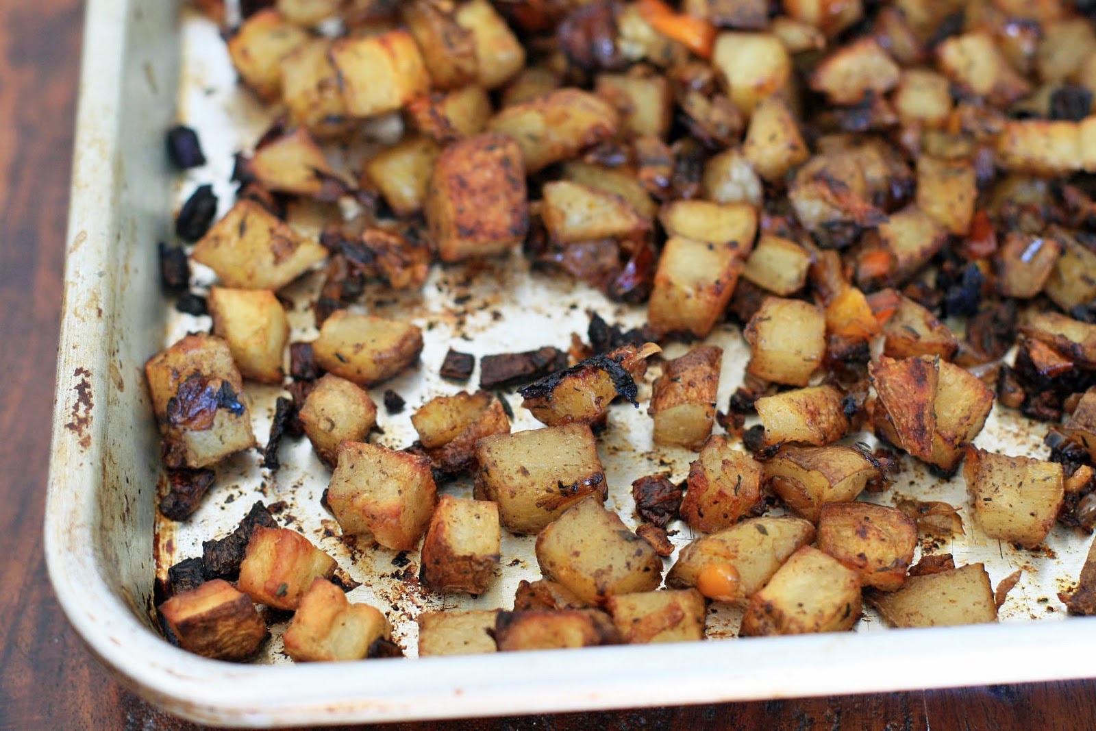 Preheat oven to 450 degrees. Combine all ingredients in a large bowl and toss well to coat. Spread evenly on a lightly greased half sheet pan. Roast for 40-50 minutes, turning the potatoes once 20 minutes in, until the potatoes are browned and crisp. For extra crispy potatoes, broil for a couple minutes at the end of the baking time, keeping a watchful eye on the oven to prevent burning.
