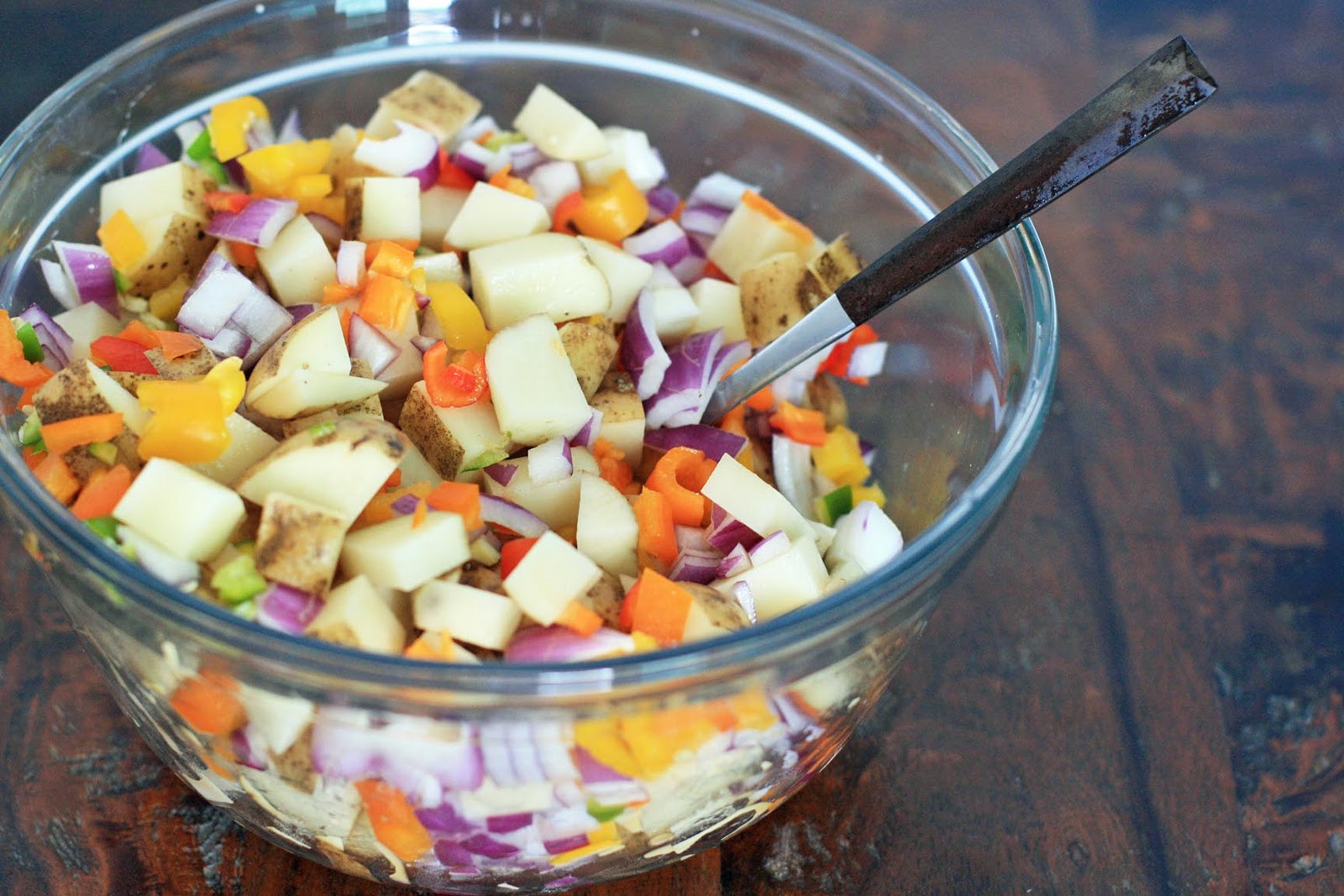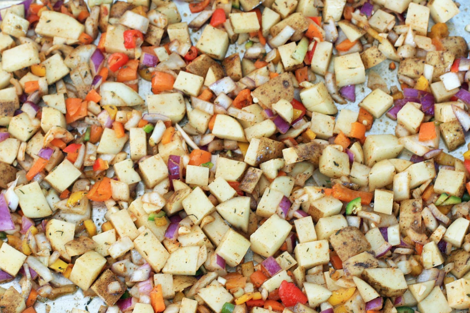 These are a great break from your standard roasted potatoes. They’re loaded with colorful onions and peppers and coated with a unique spice blend.