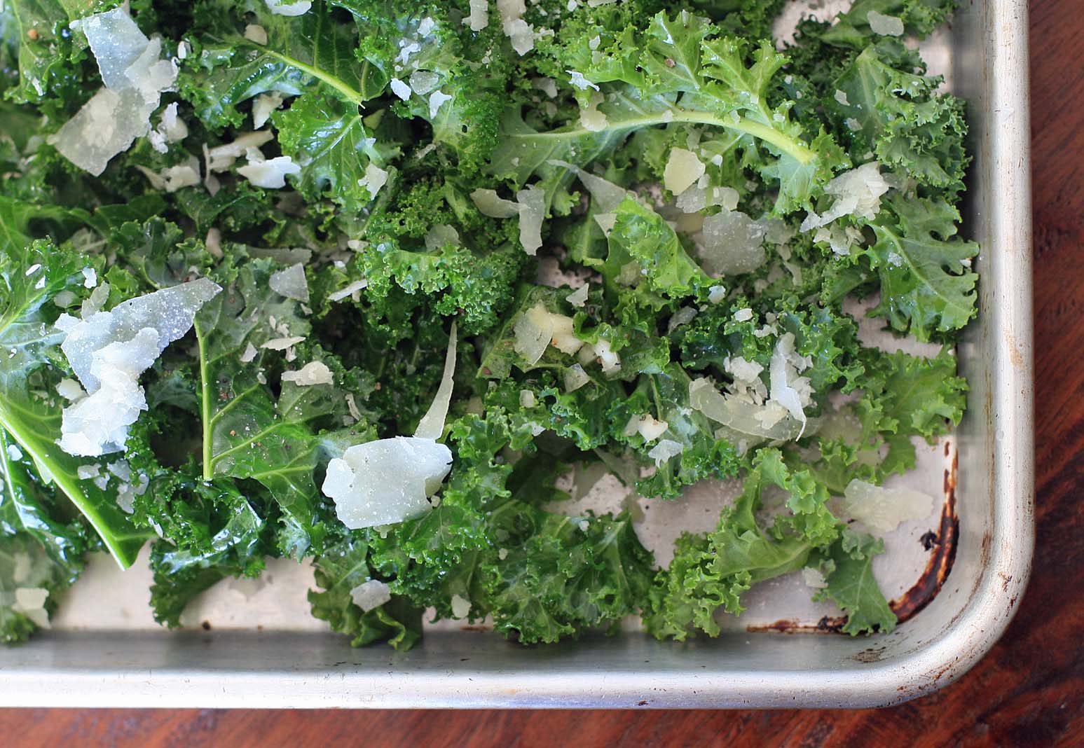 This past week I’ve been slowly transitioning back to my normal eating. Although it’s not easy, I’m doing my best to not go overboard on previously restricted foods (although a package of mochi from Maui Specialty Chocolates is making this a particularly difficult task). So rather than dive into a bowl full of cheesy, gluten-free mac and cheese, which I’ll admit sounds pretty awesome right about now, I sprinkled just a little bit of Parmesan sprinkled on these otherwise cleanse-appropriate kale chips.