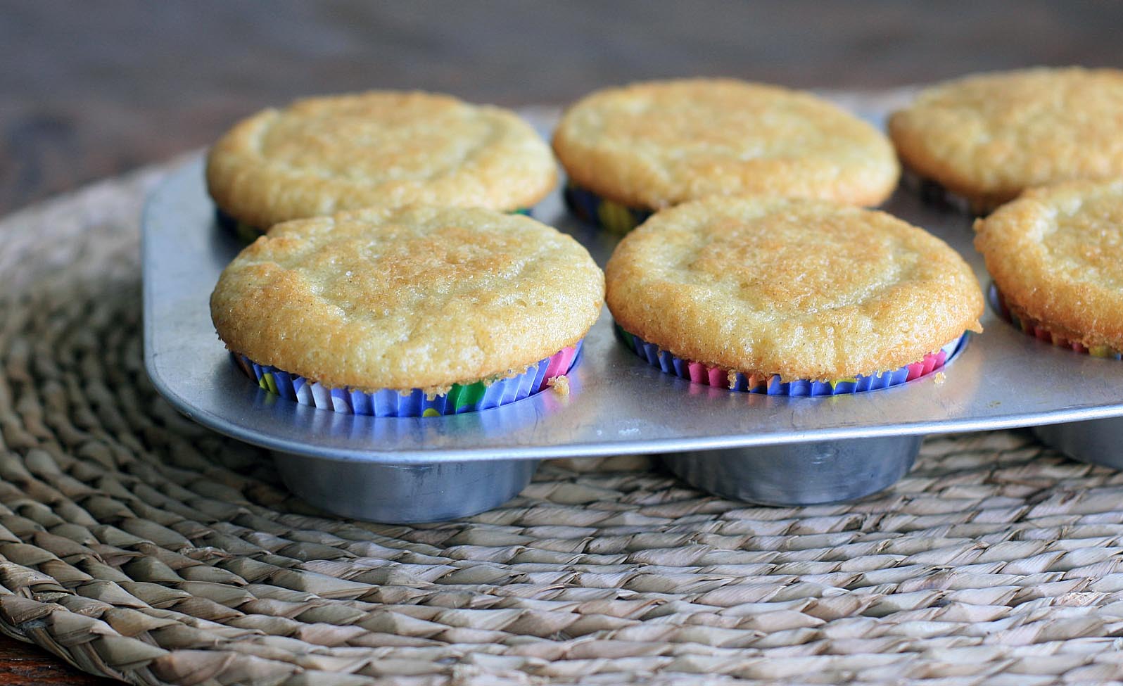 Evenly distribute the batter among the cupcake wells. Bake for 18-20 minutes, or until the tops begin to turn golden and a toothpick inserted in the center of a cupcake comes out clean. Let cool for about five minutes in the pan and then remove to cool completely on a wire rack.