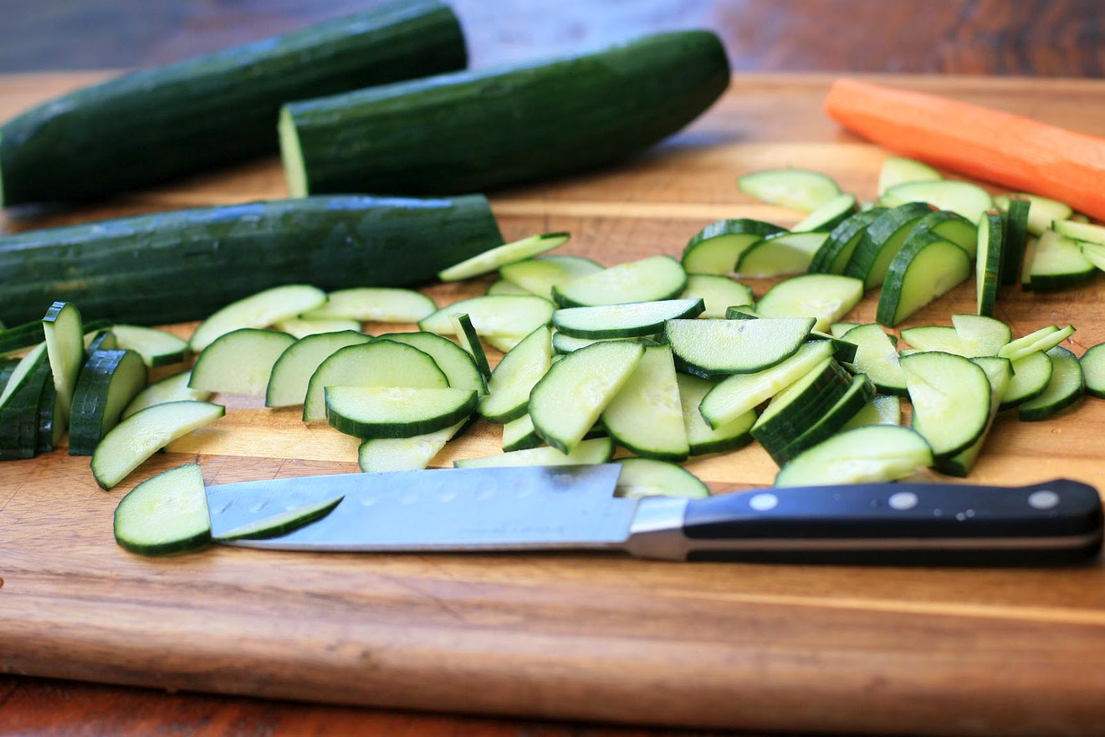 * 2 pounds seedless cucumbers, halved lengthwise and very thinly sliced