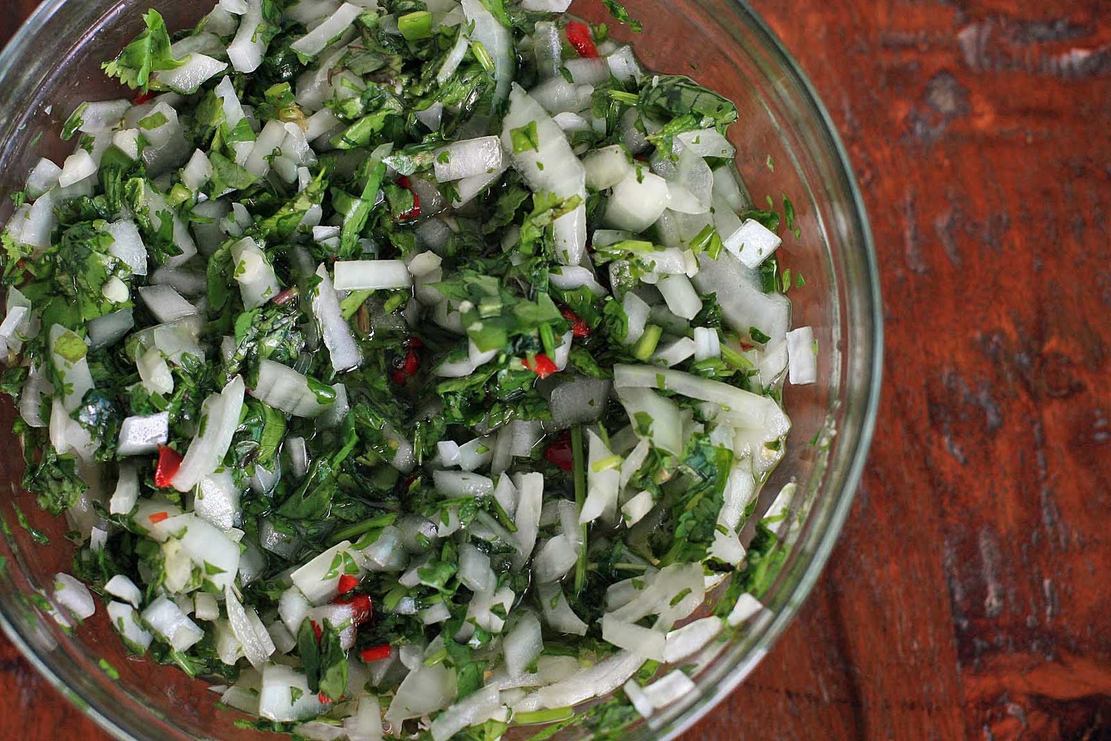 Blend the chermoula ingredients in a blender or food processor and set aside.