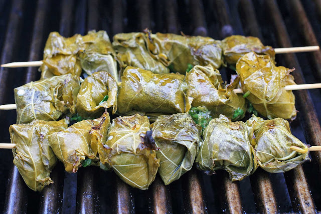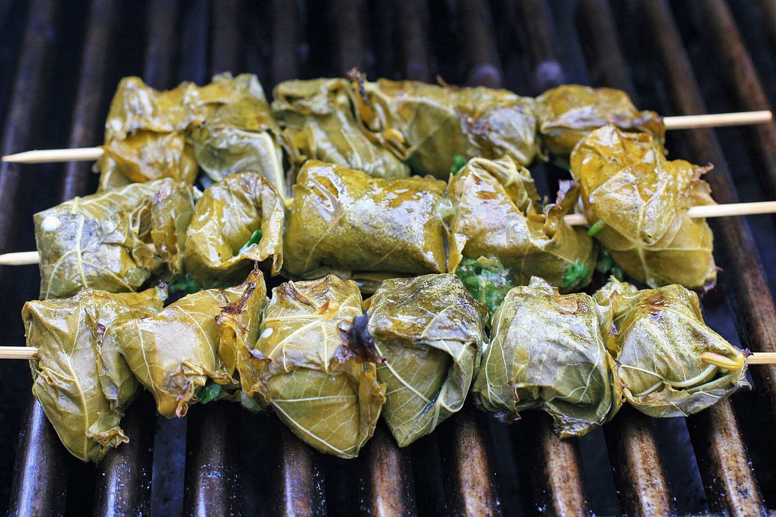 Here’s another food on a stick recipe for you guys, although this one is a little more fancy-pants than the kind I usually post around here. But don’t worry, there’s nothing too difficult going on here. Firm chunks of fish get a quick soak in chermoula, a marinade common in Northern Africa, before getting wrapped in grape leaves and cooked quickly on the grill.