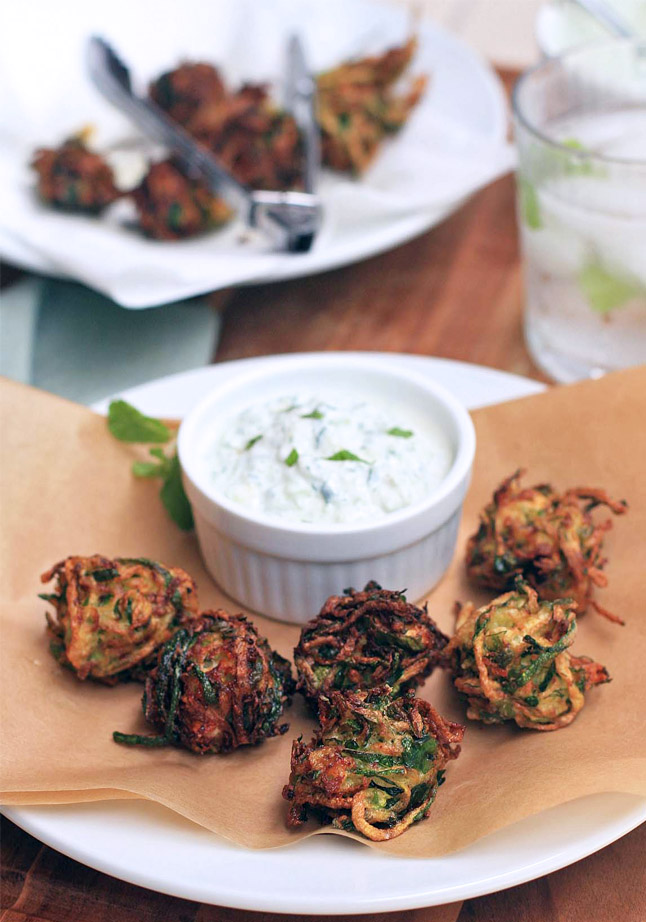I’m not afraid to break out the oil and do some deep frying from time to time, although I try taking a deep-frying breather in spring and summer months. Well, these might be the exception to the rule. Sure they’re fried, but they’re also packed with shredded zucchini, chopped mint, dill and parsley and studded with chunks of feta cheese.