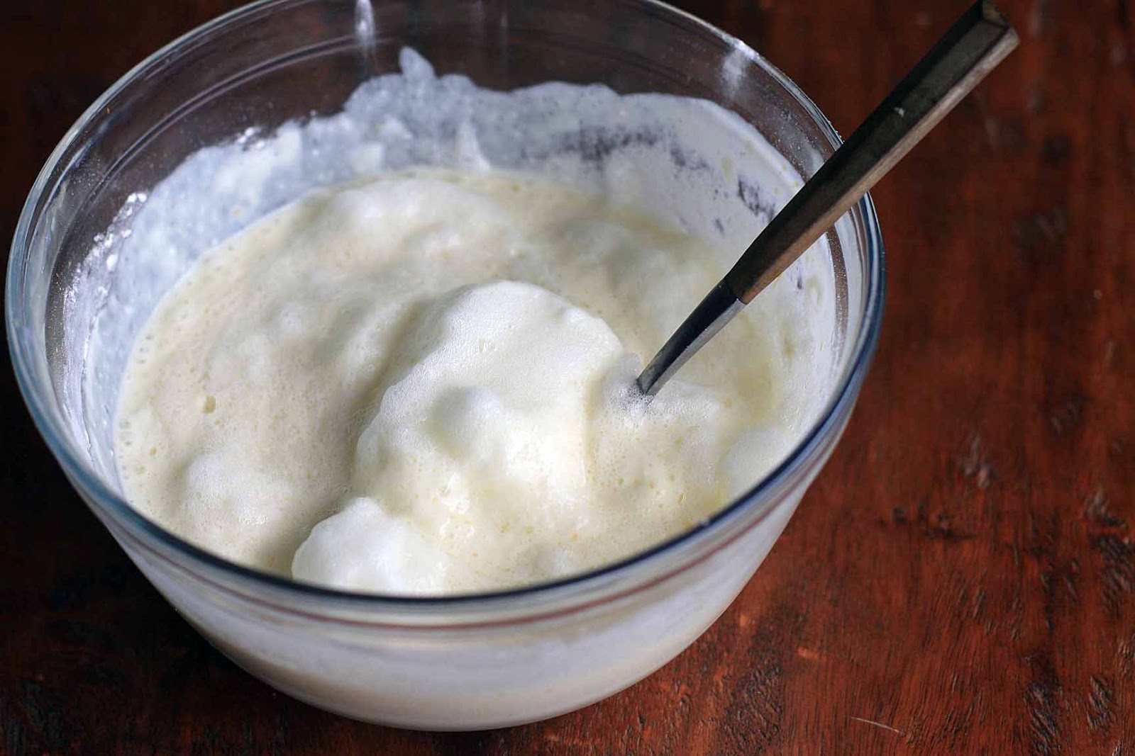 In a large bowl whisk together the rice flour, potato starch, tapioca starch, baking soda, baking powder and salt. In a separate bowl combine the buttermilk, egg yolks, sugar, ricotta, and lemon zest. Add the buttermilk mixture to the dry ingredients and stir until just blended.