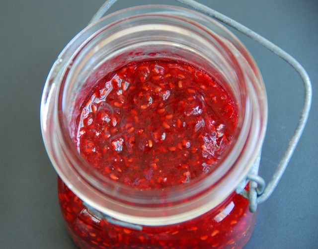 4. Check the set by placing a teaspoonful on a frozen plate. Place plate back in the freezer for one minute. Run your finger through the jam. If it wrinkles even slightly under your finger the jam is set. If your finger makes a clean break, boil for one minute more. You may need to do this a couple of times.
