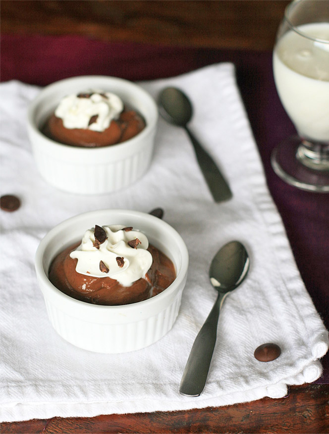 These days instead of avoiding avocados I’m constantly trying to work more of them into my diet, which leads me to purchase them in bulk. And despite my best intentions to use them in salads or make guacamole there usually comes a time when one or two is at risk of passing their prime. That’s when I whip up some of this super easy chocolate pudding. When eaten immediately after it’s made, the avocado gives it the thick, creamy mouthfeel just like those dairy-filled packaged puddings. If you place it in the refrigerator for a couple hours it becomes dense, almost like barely whipped ganache. I love it both ways.