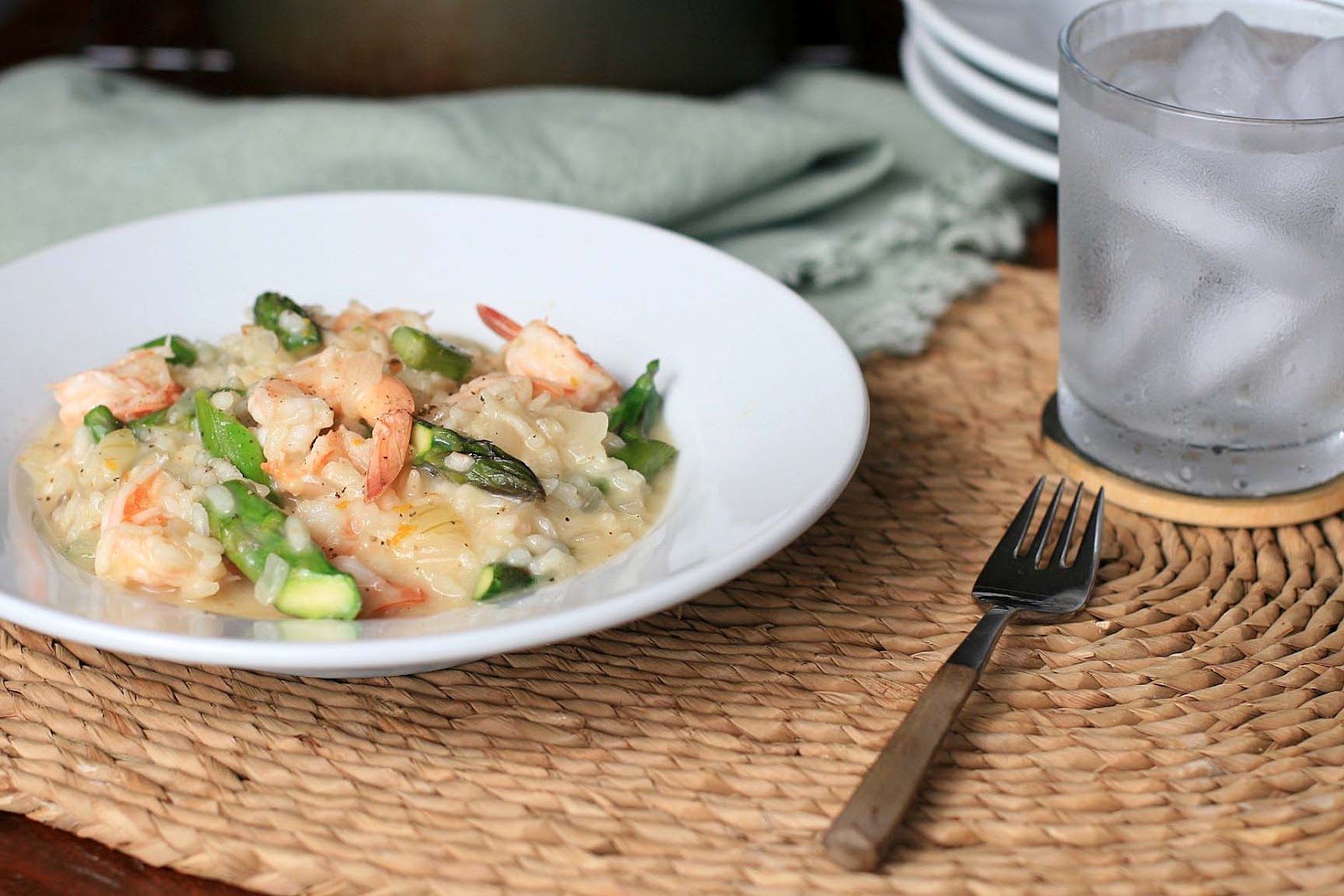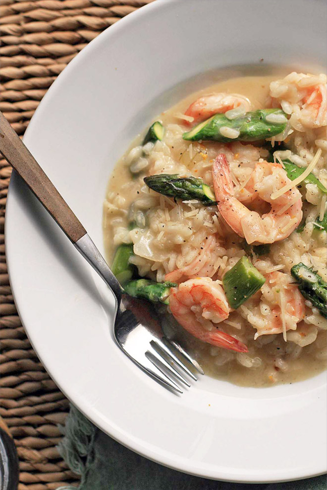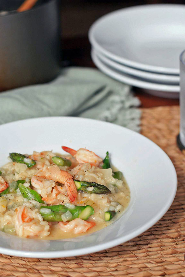 I often make asparagus and mushroom risotto for myself, but when I’m in the mood for just a little bit of extra protein, this shrimp and asparagus risotto is just the ticket. And if you serve this to company, everybody will think you’re a total rockstar for making it.
