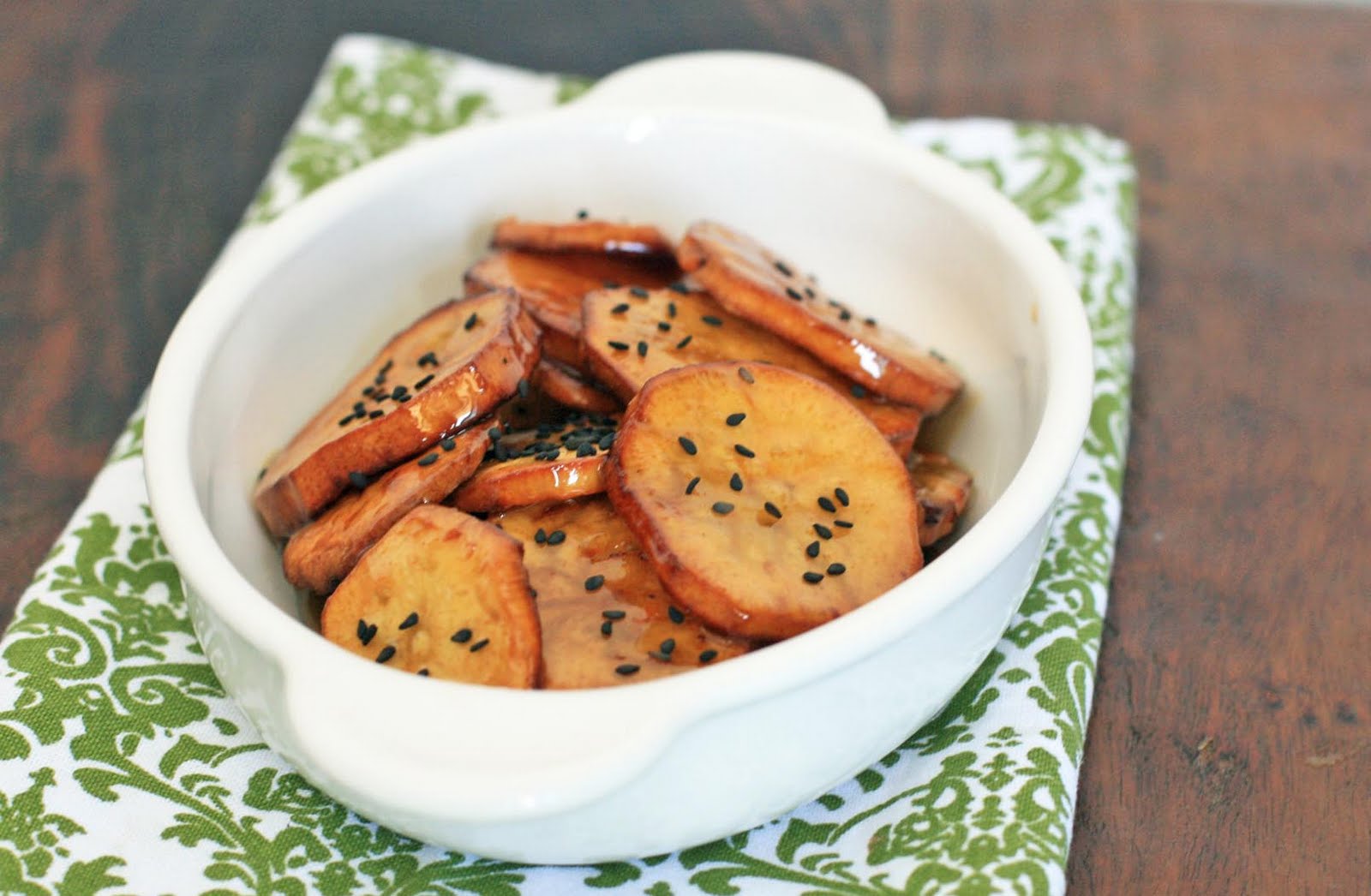 Note: If you’d like the super sweet variation, double the amount of syrup (use 1/2 cup each of brown sugar and water and use 4 crushed almonds). Dip each piece of sweet potato in the syrup before sprinkling with sesame seeds. Use little to no salt for this variation.