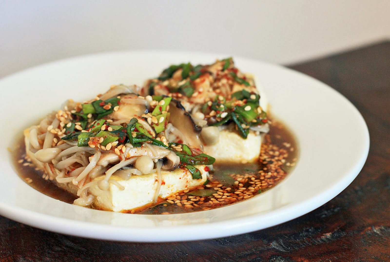 Well, I think it’s safe to say that I’ve moved past my self-imposed tofu moratorium. Quick pan fried pieces of tofu are smothered, and I mean that in the best possible way, with enoki and shiitake mushrooms and then drenched with that killer soy sesame sauce. This recipe might be just the thing to covert your tofu hating friends.